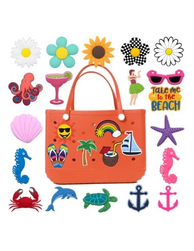 Disponibles en una amplia variedad de diseños veraniegos —como frutas, flores, animales, símbolos playeros o formas tropicales— te permiten darle un toque original, divertido y completamente personalizado a tu bolso. Cambia los accesorios tantas veces como quieras según tu look o tu estado de ánimo.